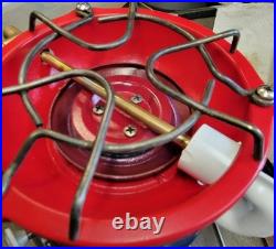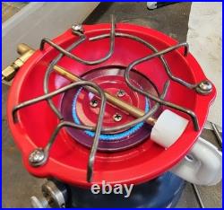 Welcome to a Happy-Campers2 Direct Sale! Up for sale, and your consideration, is this Custom Coleman Model 502 Stove to Celebrate The USA’s 250th Anniversary! NOTE: Please read all of the text in the description! As you may already know, the USA will be celebrating their 250th Anniversary in 2026, also known as the Country’s Semiquincentennial or Bisesquicentennial! We couldn’t think of a better way to celebrate the event with something as American as the Coleman Company’s Model 502 sporting red white and blue! This 502 was originally made in April of 1973. The new colors on it is a product called Cerakote. The Header Red vent can withstand heat up to 2000 degrees. The White is good to 1350 degrees. As the Blue is on the fount, it is not a high heat Cerakote color. Not only is this lantern patriot looking, it is also fully functional! Once the original finishes were removed, the new colors were professionally applied. Upon reassembly, the stove received a new fuel cap gasket, check valve, generator and custom “Yankee Doodle” custom Coleman logo. The pump leather was oiled. The stove has been fueled. This stove has been tested. A copy of the operating instructions will be included. This stove looks patriotic enough that even Benjamin Franklin may have been proud to have owned this stove! We regret having to do this. Thank you for your understanding in this matter. PACKING: We pack your items the same way we would want to receive them. That is, we pack to minimize any chance of breakage. Lanterns are disassembled of globe, vent and bail handle. Thank you for your interest in our sale! Please see our other items!